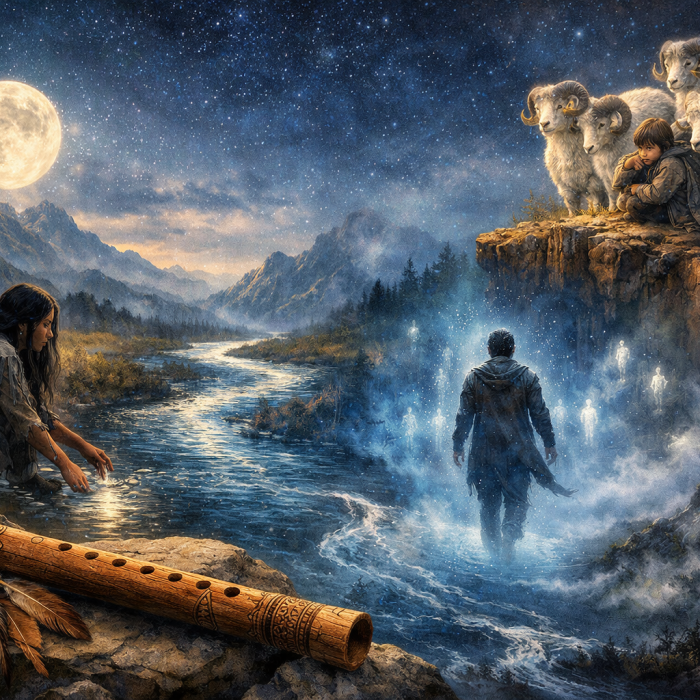 Conoceremos la leyenda de Crazy Woman’s Creek, la creación de la primera flauta, la historia del hombre que desciende al mundo fantasma para rescatar a su mujer muerta, y el relato del niño arrojado al acantilado por su padrastro, salvado por siete borregos.